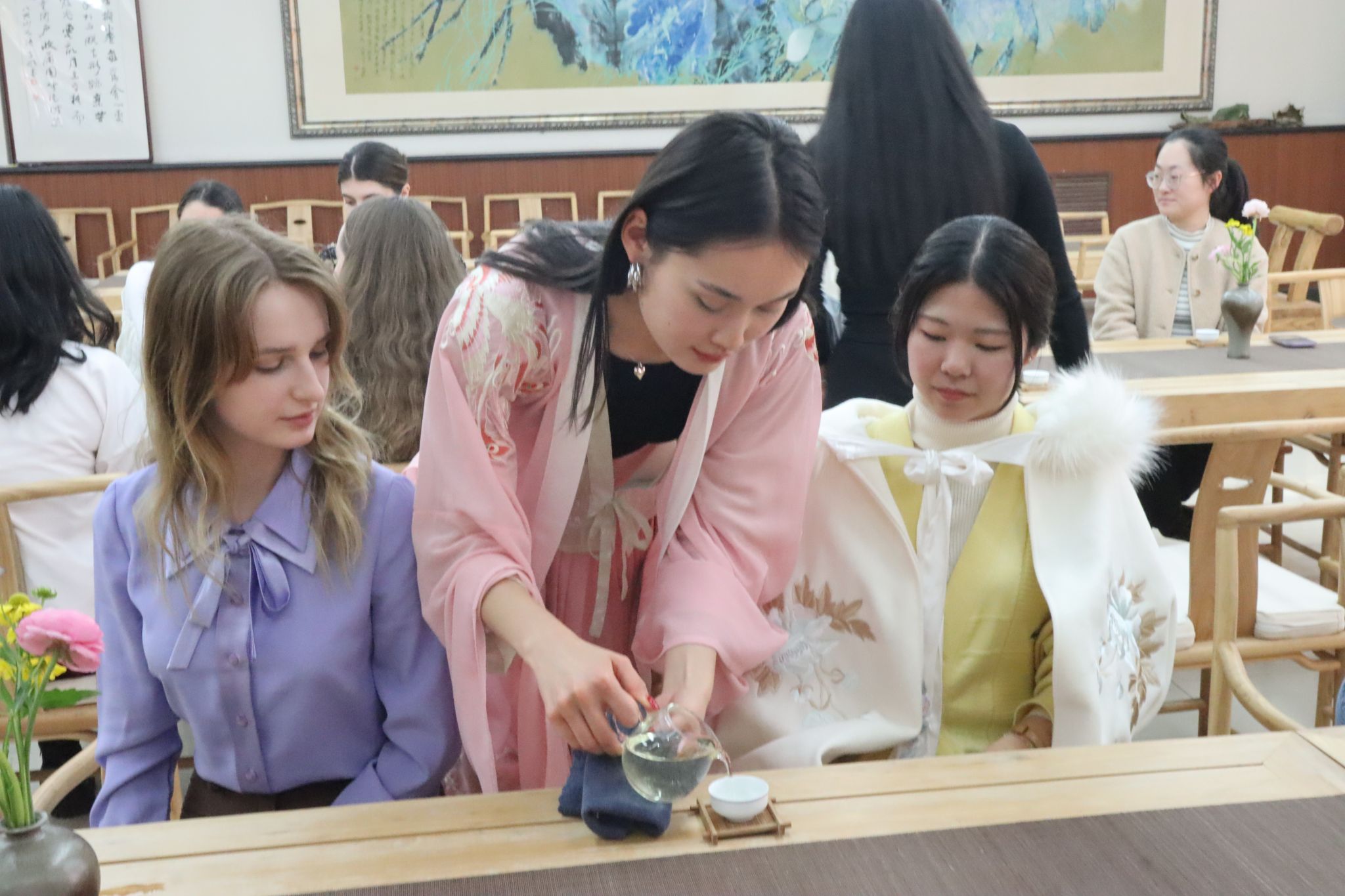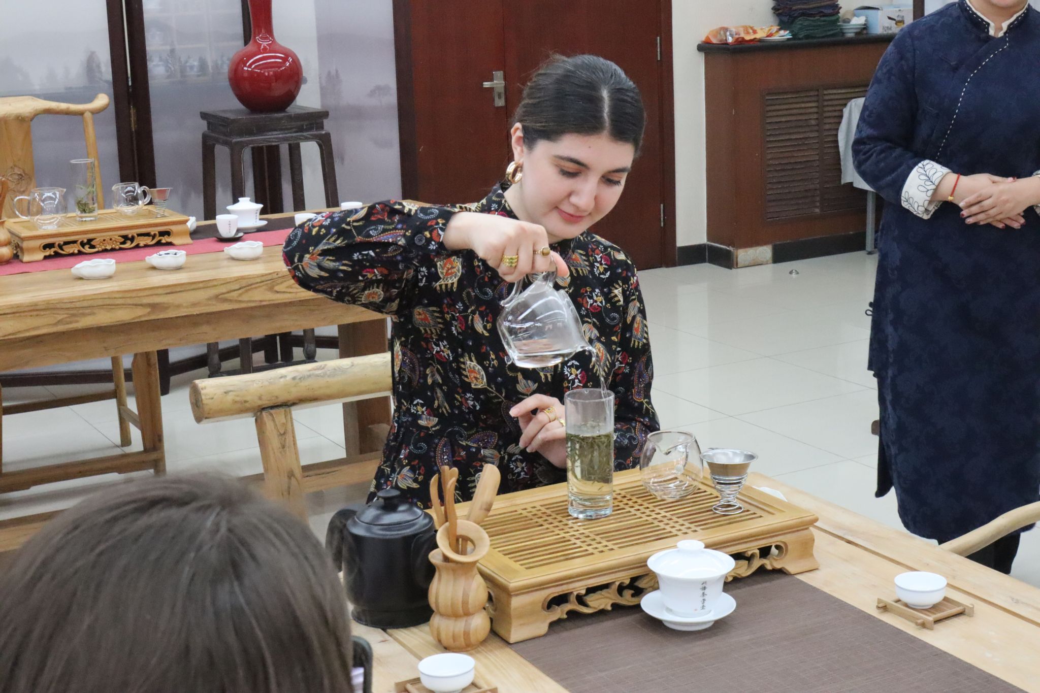 的21名师生在“北语茶学堂”举办了中华茶文化体验活动。21名师生中,有来自俄罗斯、吉尔吉斯斯坦、阿塞拜疆、乌克兰、日本、韩国、越南、法国、马来西亚、萨尔瓦多、尼加拉瓜等11个国家的14名国际学生。