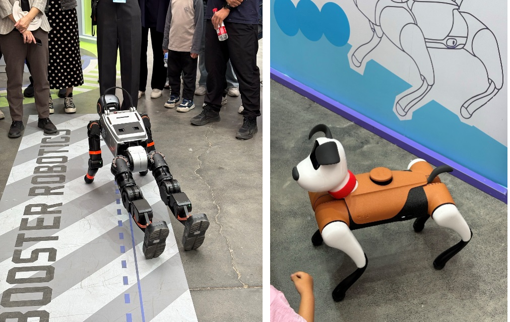 在智能机器人展示区,机器狗以其憨态可掬的形象和灵活机动的身姿在地面穿梭腾转,引得同学们欢笑连连;而人形机器人不仅有高难度动作展示,其先进的语音交互系统还能与同学们流畅对话。同学们近距离观察这些智能机器人,深入了解其技术原理和应用场景,对智能机器人的现状有了更直观、深刻的认识。大家积极交流讨论,思考如何将人工智能技术与语言领域深度融合,探索人工智能赋能中文教学与研究的创新路径,激发了跨学科研究的热情,为推动学科建设与人工智能相结合提供了新的思路和方向。