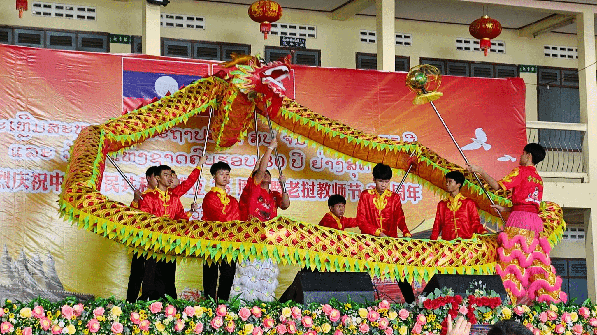 节日是文明互鉴最鲜活的载体,也是情感的自然流露。国庆节时,中国老师在老挝这片土地上放声歌唱,用歌声祝福祖国75周年快乐,而同学们排练了将近一个月的舞龙表演,他们用平日里辛苦训练的汗水和舞台上的笑颜,表达了对中国的最美好而纯真的祝愿,舞龙这一传统民俗活动,成为文化交流的生动展示,让老挝学生深入体验中国文化的独特魅力;2025年春节,乐天堂