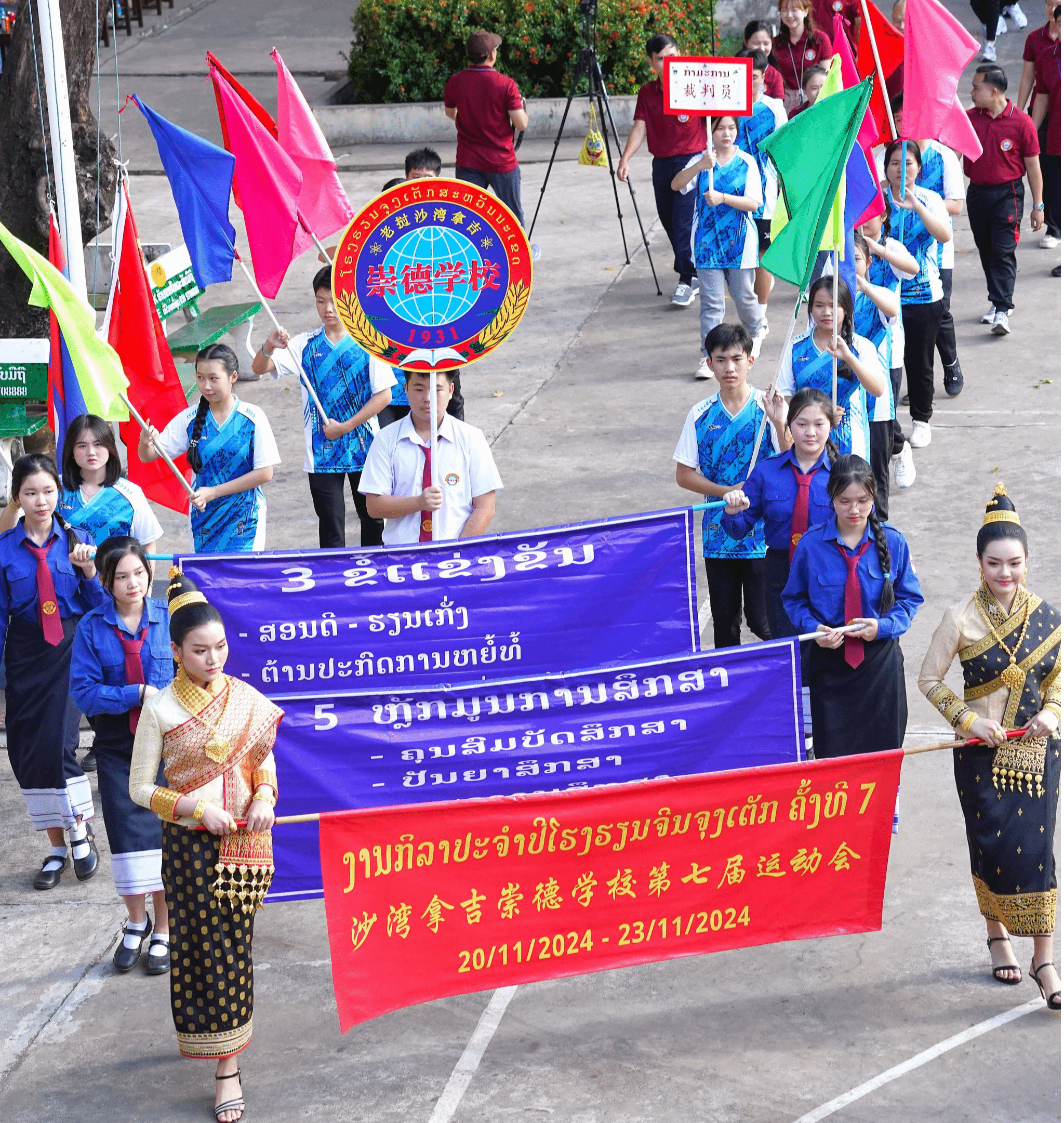 最平凡而又普通的文体活动里,中老文化的碰撞与融合更显生动。校运会开幕式上,中老元素共融的方阵缓缓走过:学生们身着老挝传统服饰,举着中老双语旗帜,体育活动成为文化交流的展示平台,让两国文化在运动中相互交融、相互促进;气排球比赛时,我作为裁判讲解规则,看着学生们在赛场上挥洒汗水,竞技的紧张里,友谊悄然升温,学生们在体育活动中感受到中老文化的共同价值与内涵,增进了两国人民之间的相互理解和尊重。