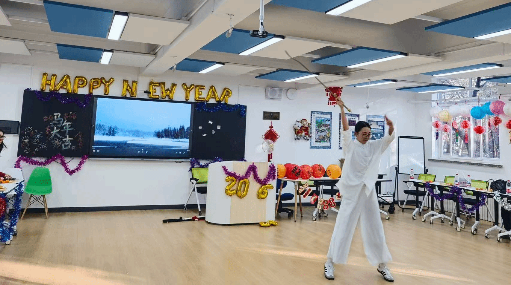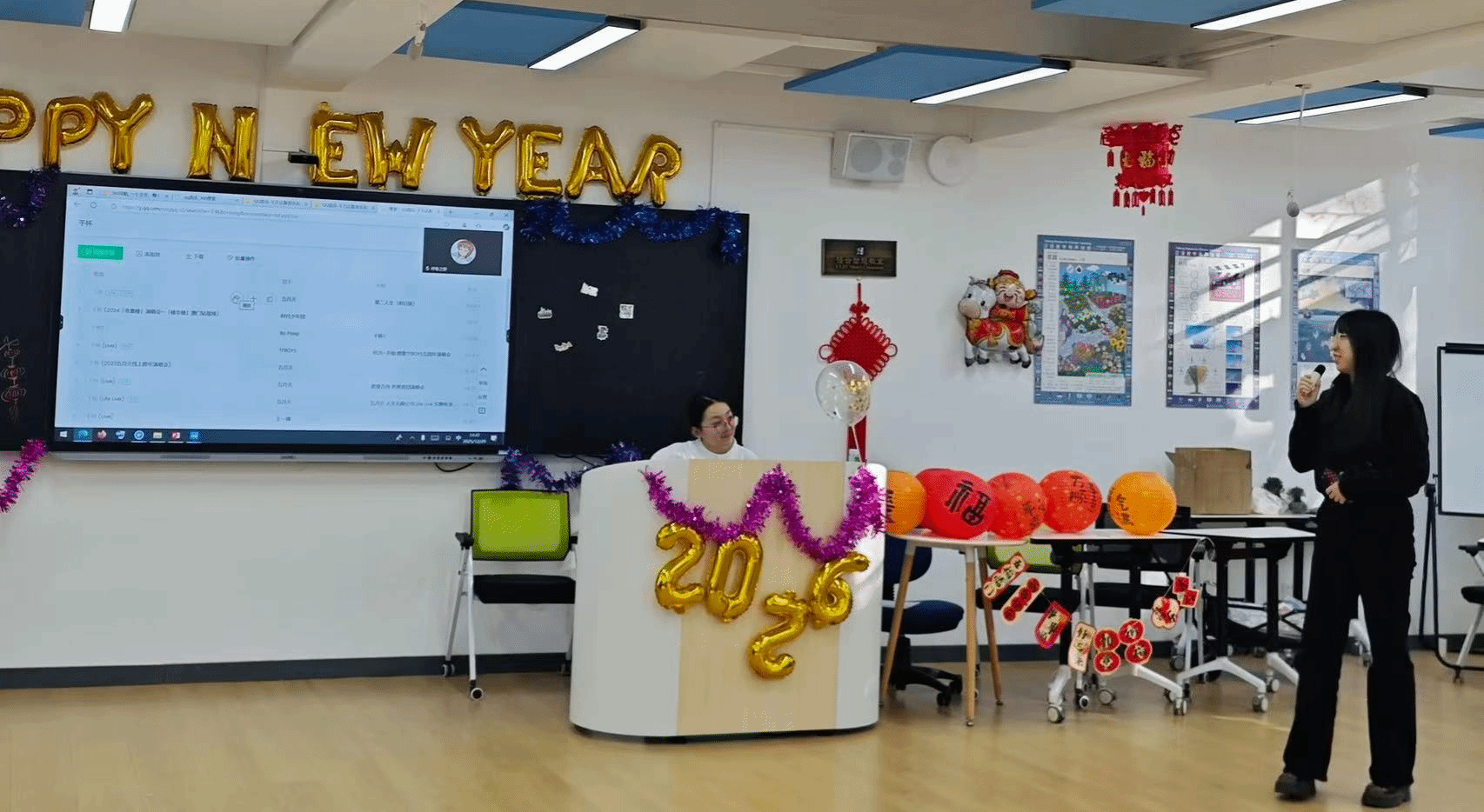 年度发展成果,向海外学生表达节日问候,并勉励学子以中文为桥传承文化。朱文文老师也向同学们致以新年祝愿。